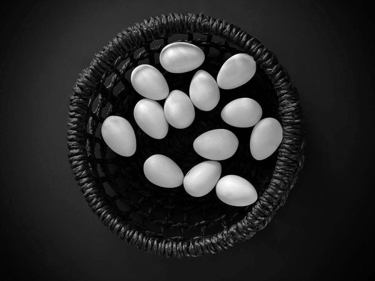 Eierschachtel mit Ostergras & Band