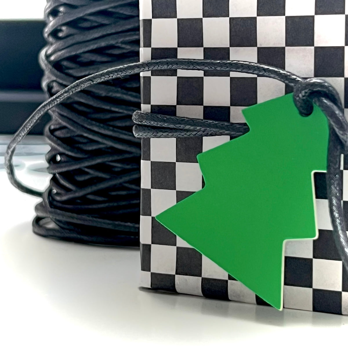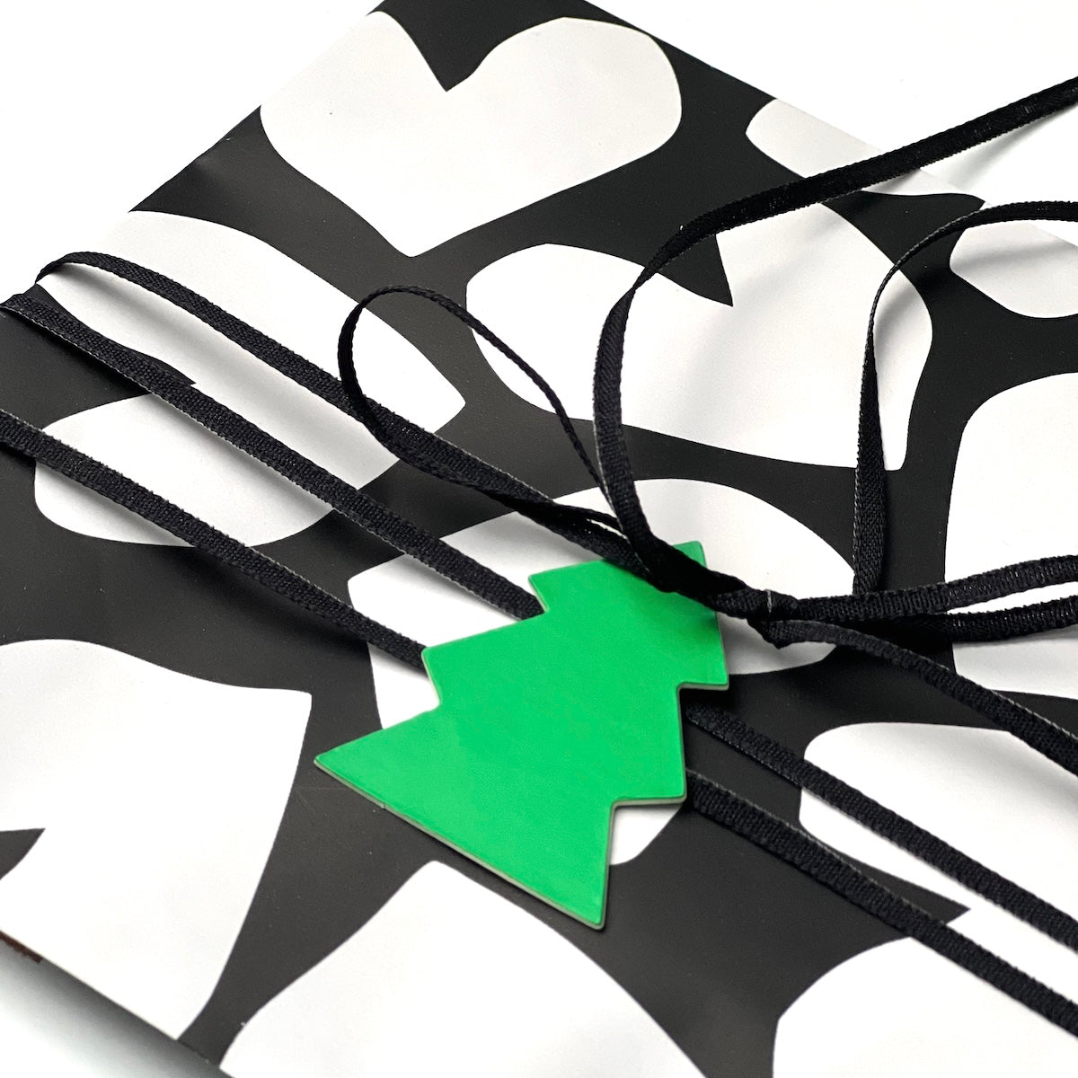 Anhänger aus fester Pappe. Ideal um Geschenke aufzupeppen oder für deine Weihnachtsdeko. Mit schwarz-weißem Baumwollband.