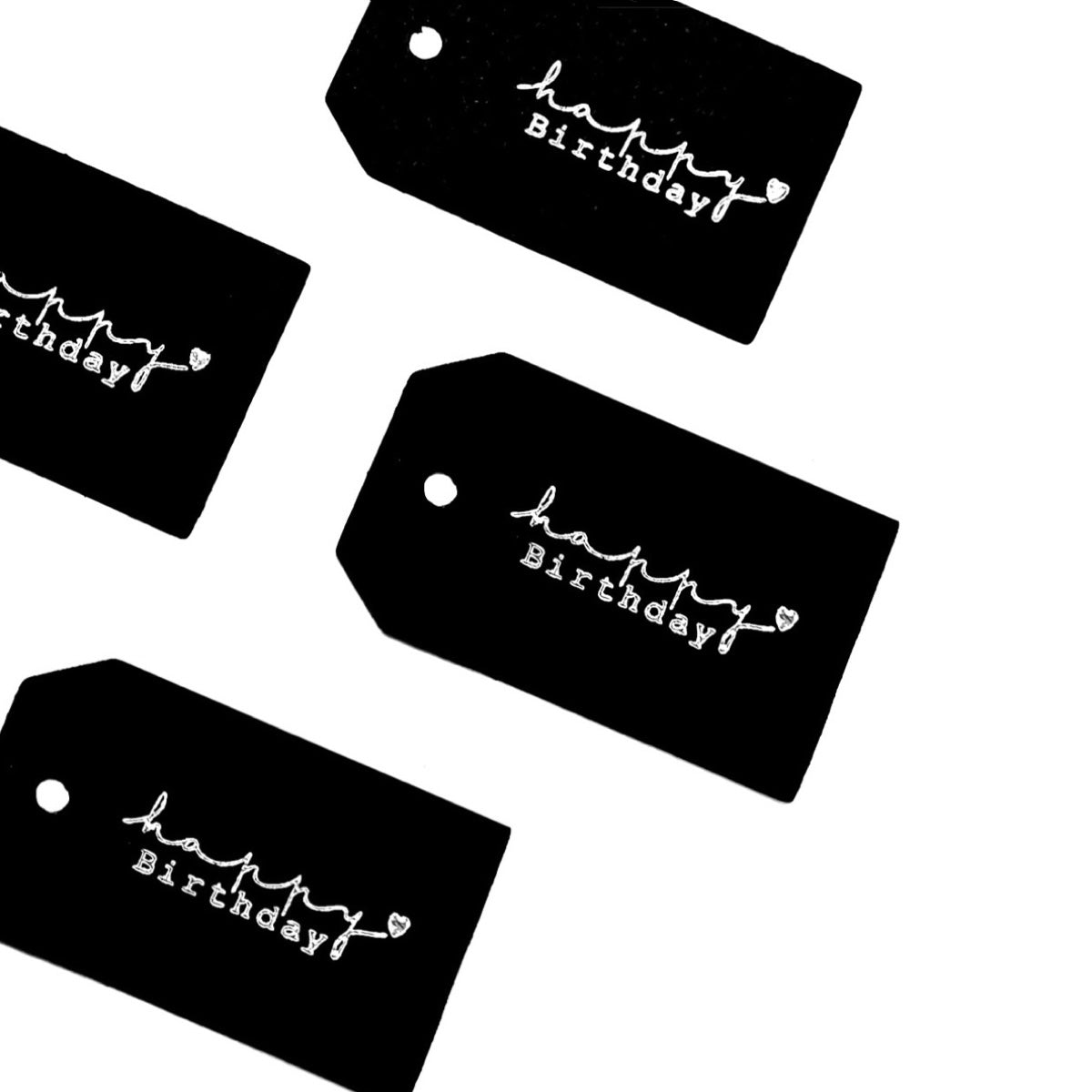 Anhänger aus schwarzer Pappe mit von Hand gestempeltem Motiv.