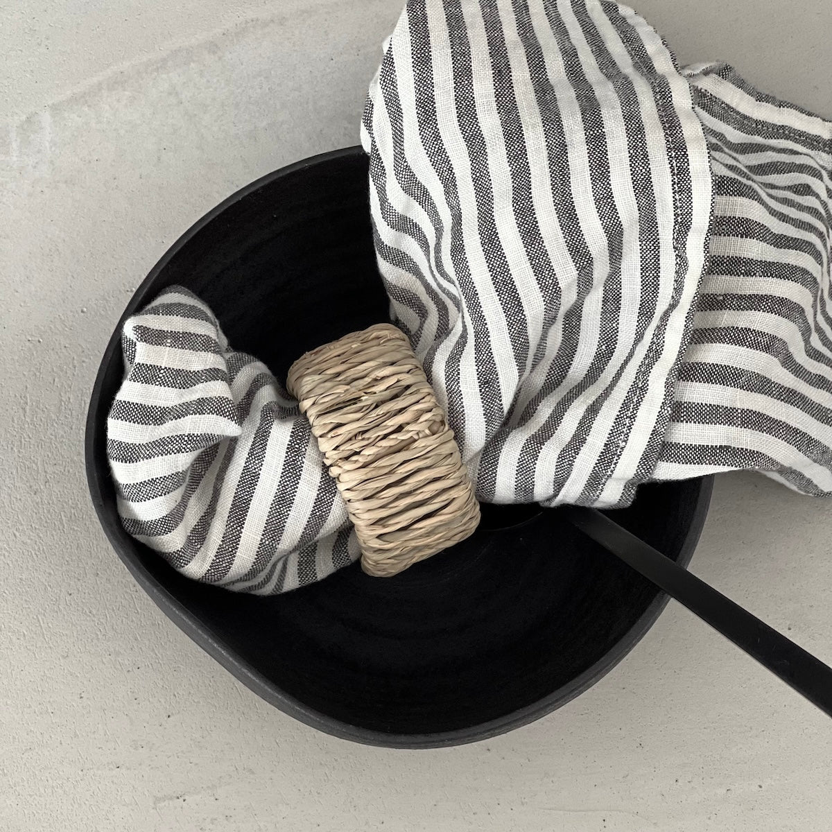 Weiß - Grau gestreifte Leinen Serviette. Passte einfach überall dazu.