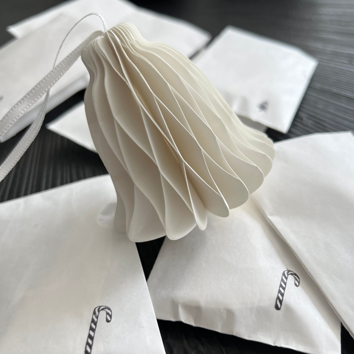 Wabenornament in Form einer Glocke. Einfach auffalten und durch den innenseitigen kleinen Magneten wird sie zusammengehalten. Du kannst sie aufhängen, oder hinlegen, die Schlaufe kann man im Inneren verstecken.