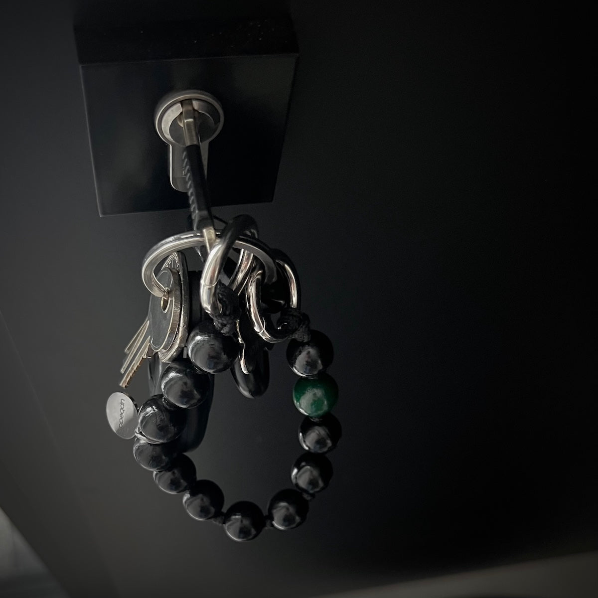 Schlüsselanhänger oder auch Handkette - ganz wie du magst. Die in Deutschland in liebevoller Handarbeit gefertigten Schmuckstücke lassen sich durch die beiden formschönen Karabiner in deinen bestehenden Schlüsselbund integrieren.