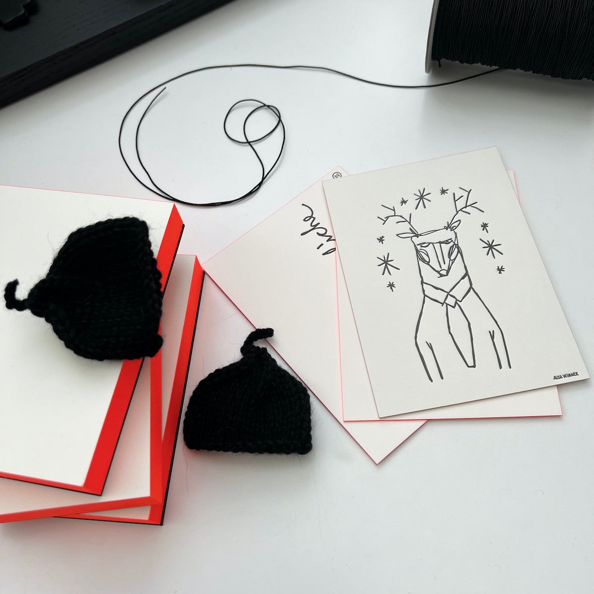 Jede einzelne Karte wird von Hand im Letterpress Verfahren auf einer 700g Karton geprägt und mit dem 'Heidelberger Tiegel' gedruckt. Veredelt wird die Karte durch den umlaufenden Farbschnitt.